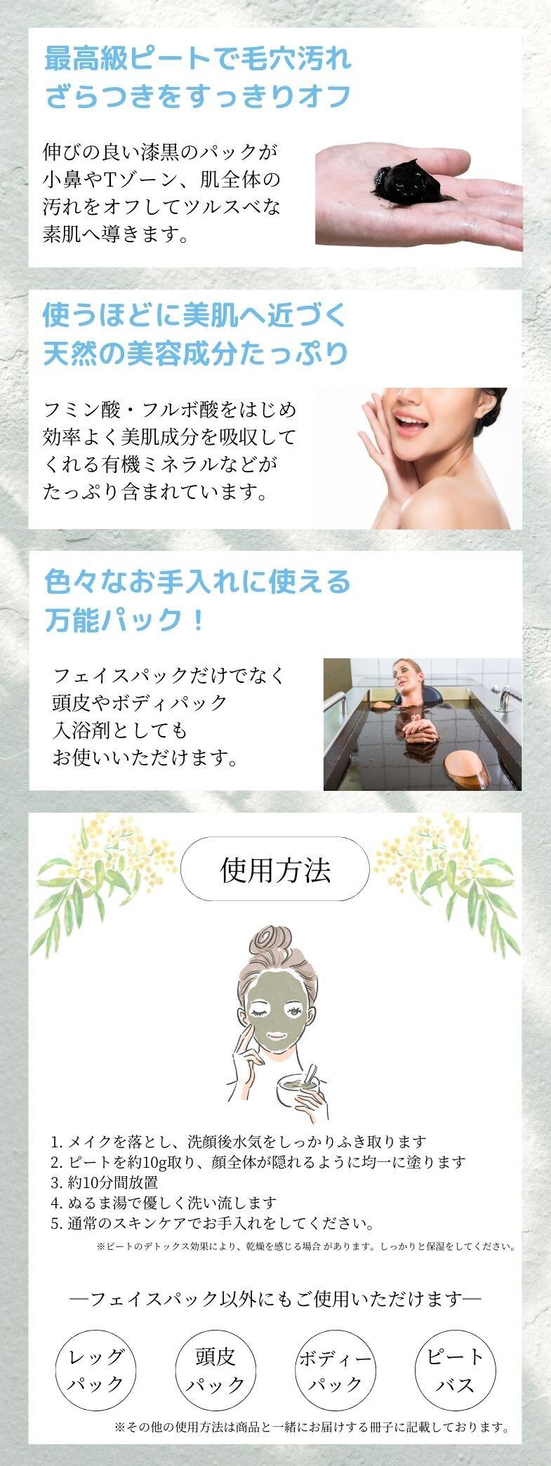 【ボディーパック】 デトックスで健康な肌へ気になる部分に塗布し、約10分間おいた後ぬるま湯で洗い流します。